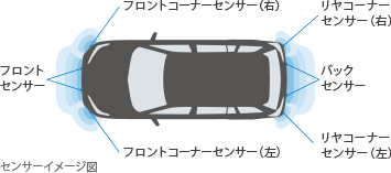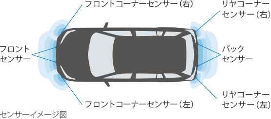 ■インテリジェントクリアランスソナーは自動ブレーキまで働くシステムではありますが、必ず止まることを約束するものではありません。■道路状況、車両状態および天候状態等によっては作動しない場合があります。また、衝突の可能性がなくてもシステムが作動する場合もあります。詳しくは取扱書をご覧ください。■ソナーの検知範囲、作動速度には限界があります。必ず車両周辺の安全を確認しながら運転してください。