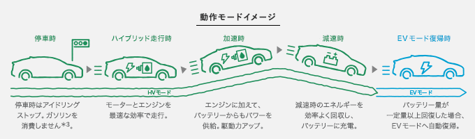 はじめはバッテリーのみで給電し、バッテリー残量が所定値を下回るとエンジンがかかり給電を継続します。
